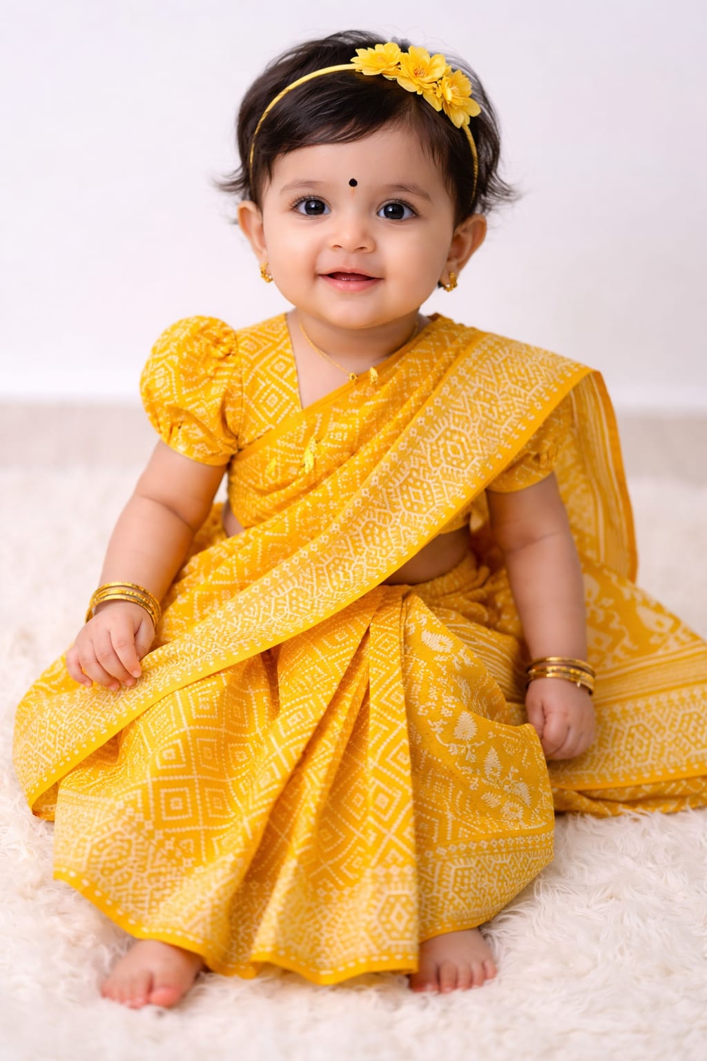 ০২বেবির মাপ অনুযায়ী আমরা কাস্টমাইজ করে যেকোনো বয়সের রেডির শাড়ি দিয়ে থাকি