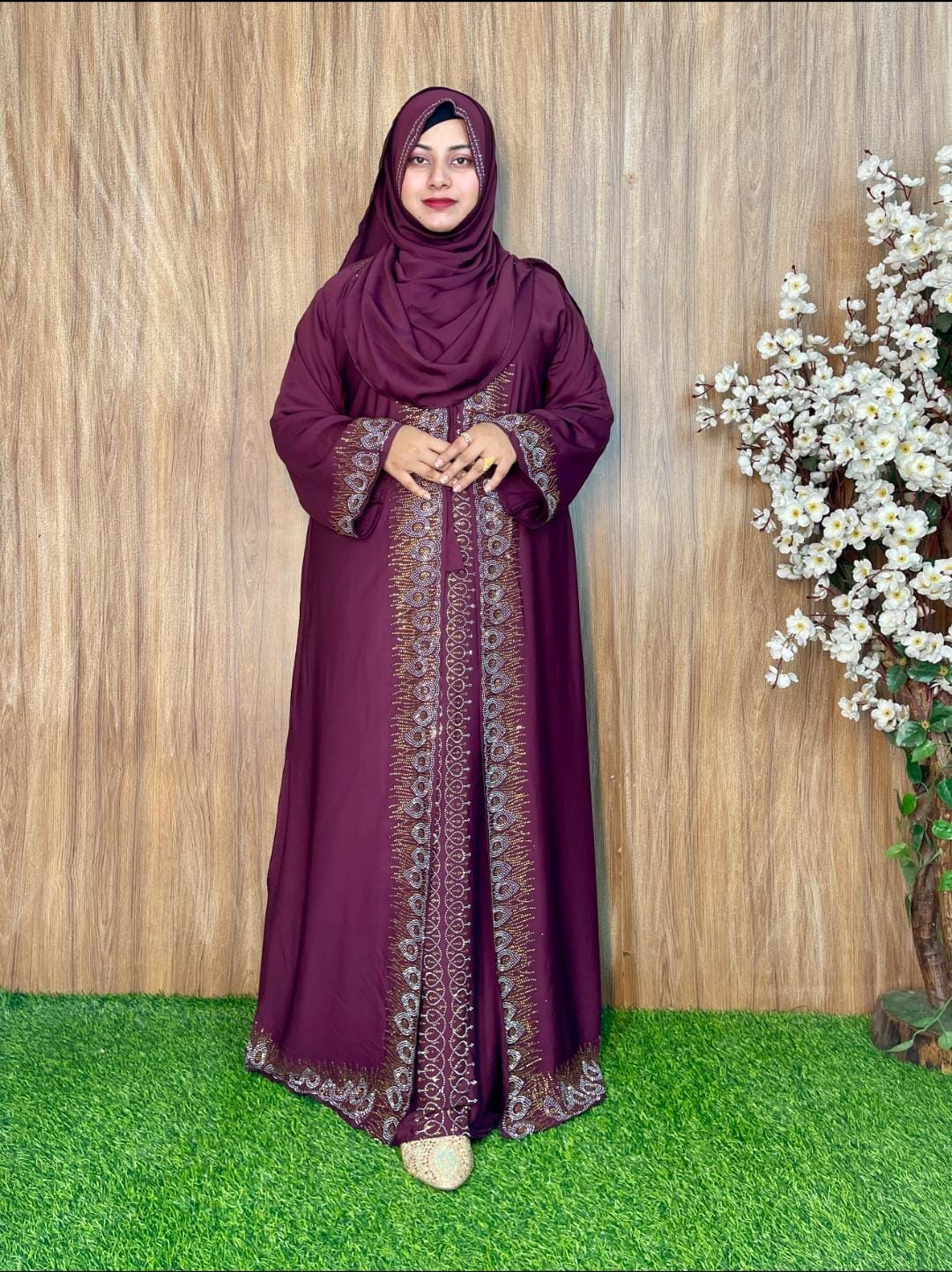 LB-01 মেরুন ষ্টোন চেরি কাপড় বোরখা